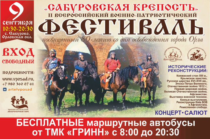 9 сентября 2023 года Духовно-православный центр "Вятский Посад" проводит II Всероссийский военно-патриотический фестиваль «Сабуровская крепость».