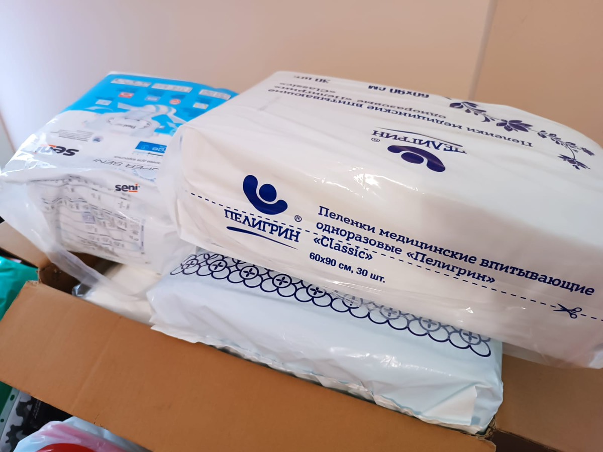 На днях приход храма получил от добровольческой группы троснянских мастериц медицинские простыни и пеленки, необходимые для оказания первой помощи бойцам на передовой и маскировочные сети. Также среди предметов, переданных волонтерами - партия медицинских пеленок и памперсов промышленного производства.