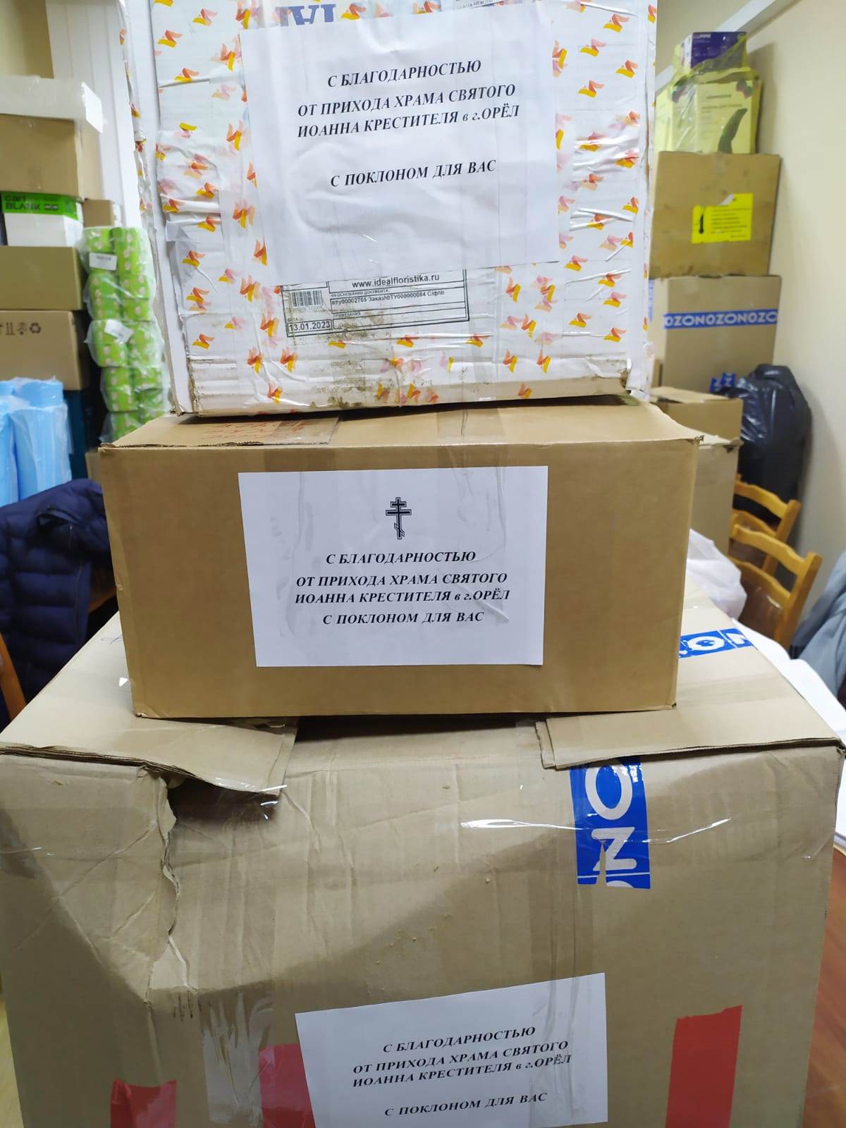 Прихожане храма святого Иоанна Крестителя города Орла и волонтеры регионального Центра гигиены и эпидемиологии объединили усилия в деле поддержки военнослужащих, задействованных в зоне проведения спецоперации.