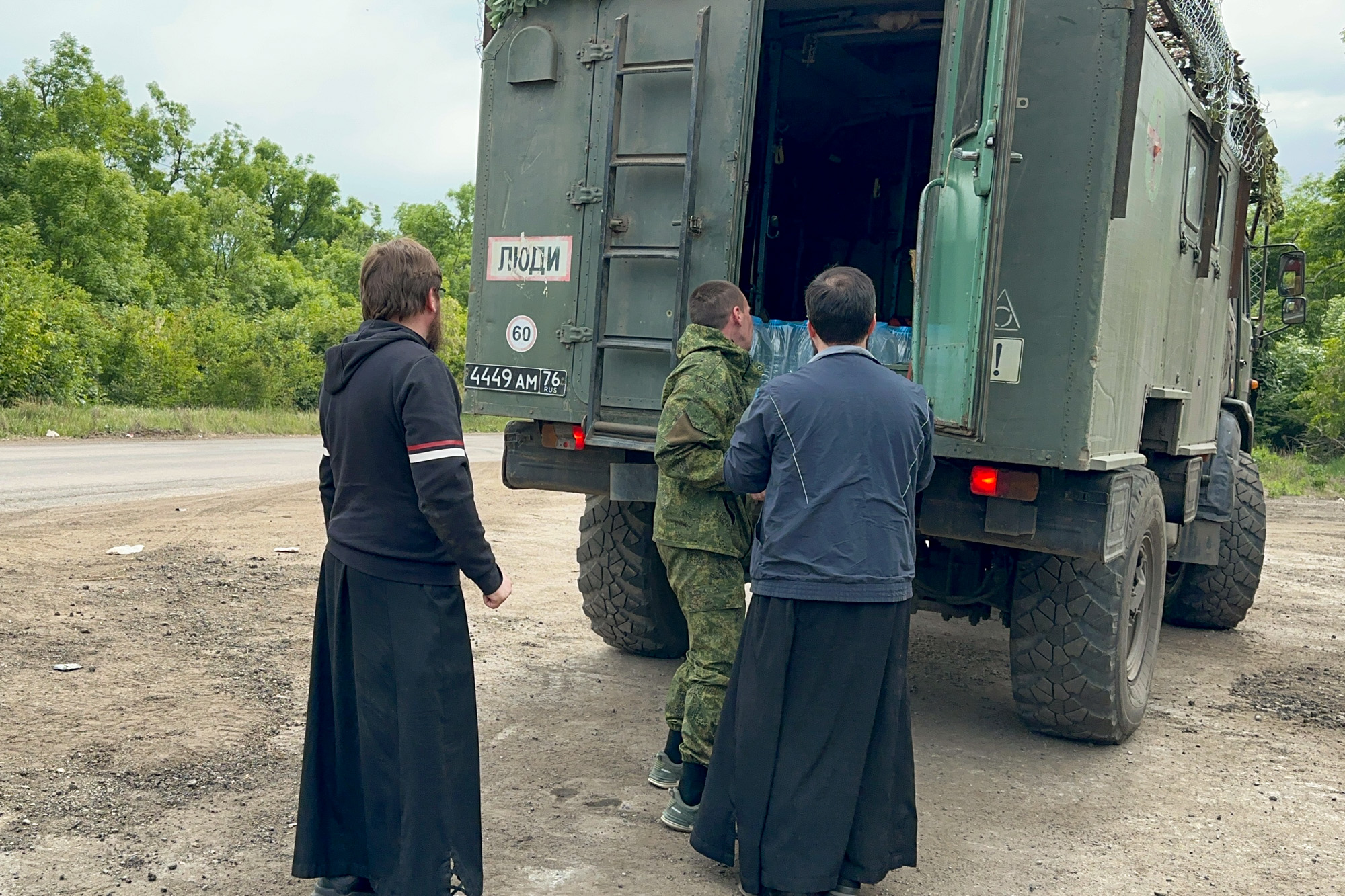Гуманитарный конвой в этой небезопасной командировке на линию фронта сопровождали орловские священники — благочинный храмов Центрального округа Орловской епархии протоиерей Василий Иванов и ключарь гарнизонного храма Казанской иконы Божией Матери города Орла иерей Максим Ерескин. В двух доверху заполненных грузовиках — 20 тонн чистой питьевой воды и столько же тонн продуктов.