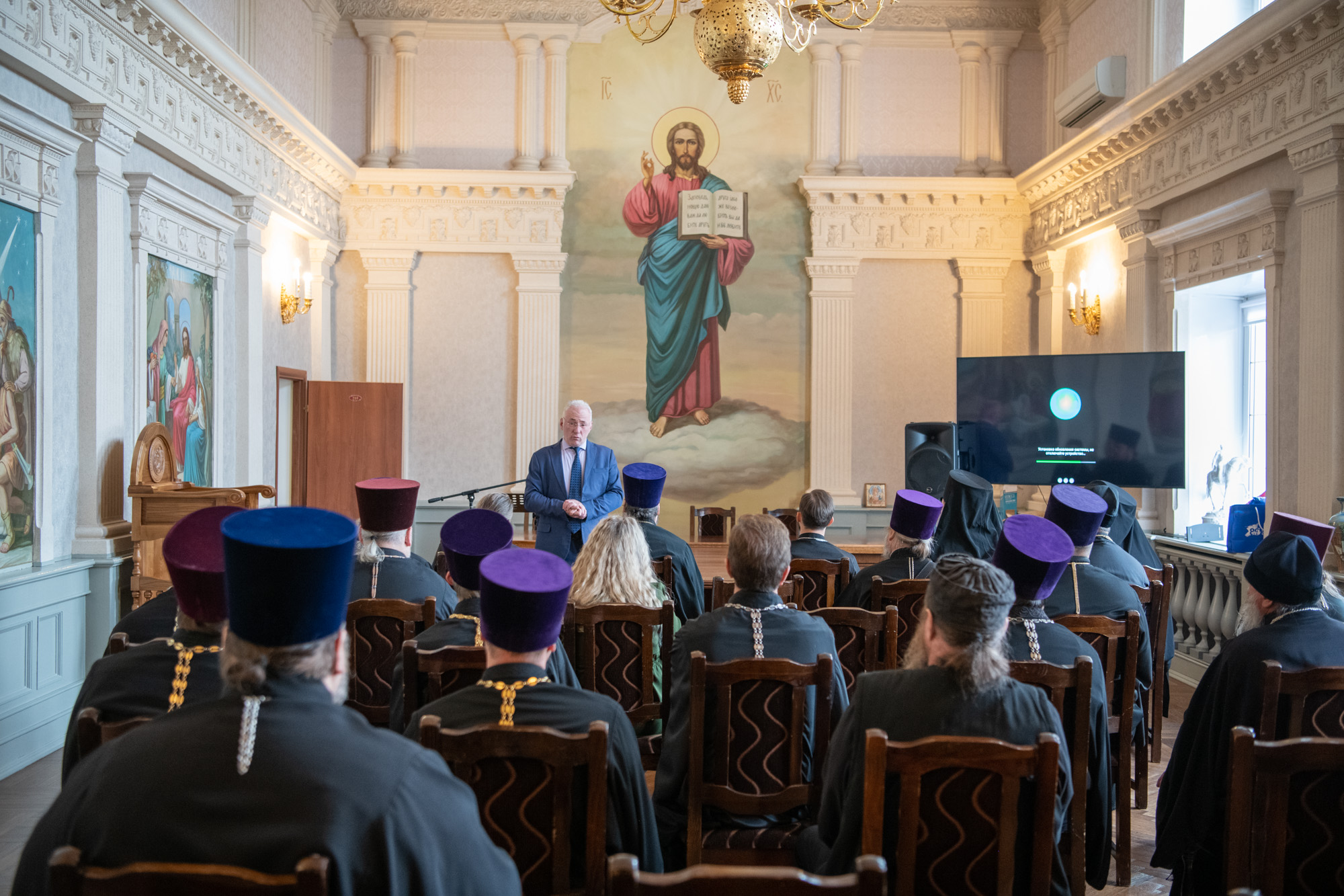 Хасьминский рассказал орловскому духовенству об основных принципах работы по оказанию помощи участникам СВО и людям, переживающим утрату. Особое внимание в ходе встречи было уделено особенностям оказания психологической помощи людям, испытывающим чувство вины в связи с утратой близких.