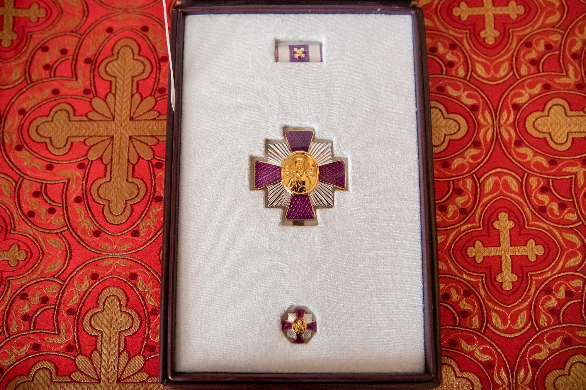 Высокой Патриаршей наградой отец Георгий отмечен за труды во славу Святой Церкви и в связи с 75-летием со дня рождения.