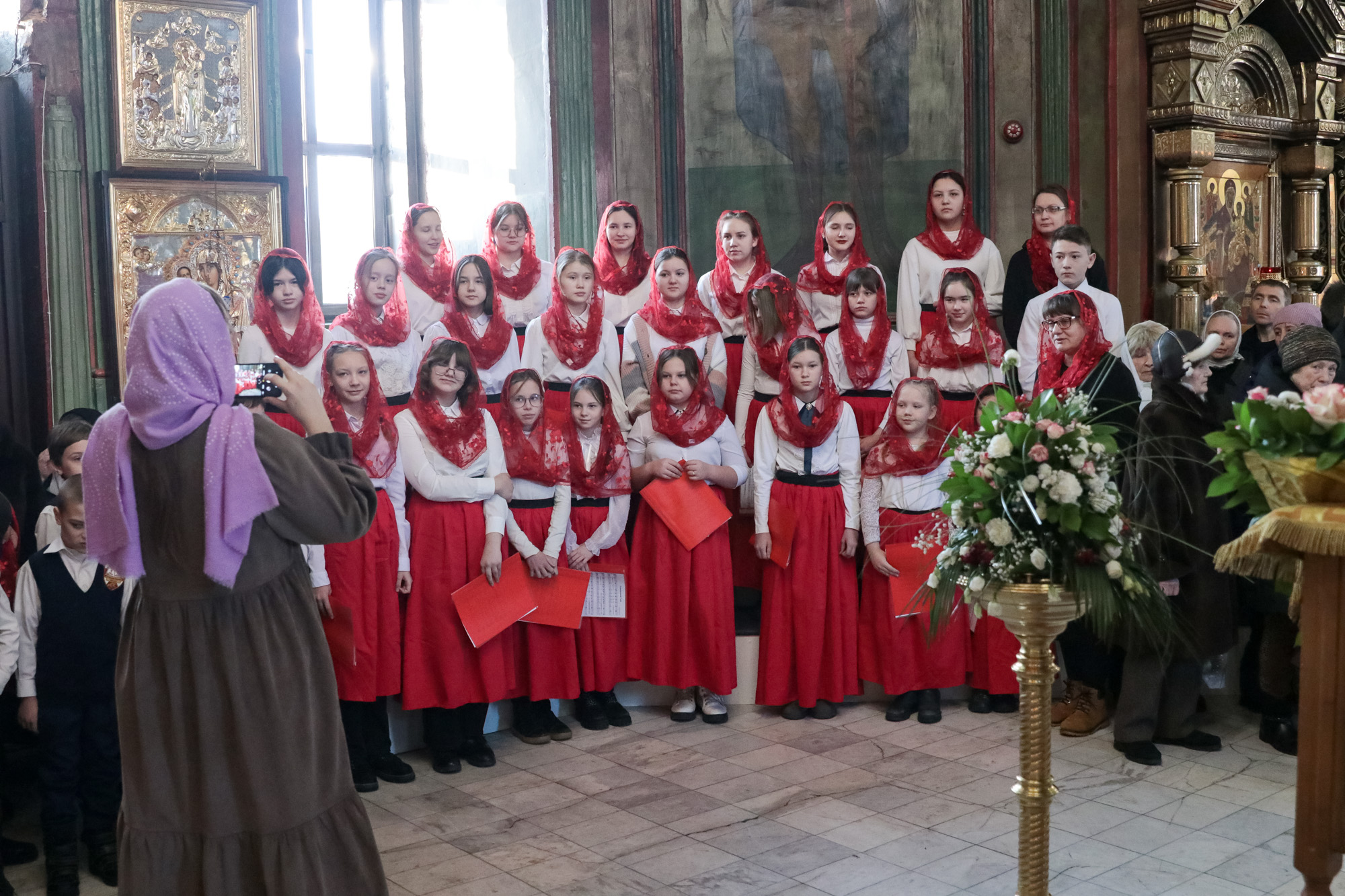 За Литургией молились педагоги и ученики Александро-Невской православной гимназии и воспитанники епархиальной воскресной школы. Смешанному архиерейскому хору помогал детский клирос, состоящий из гимназистов и воспитанников воскресной школы.