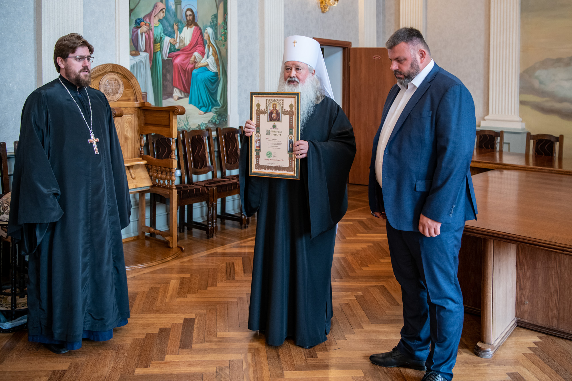 Сегодня митрополит Орловский и Болховский Тихон вручил советнику Губернатора Орловской области Сергею Лежневу Патриаршую грамоту. Церемония награждения состоялась в резиденции Управляющего Орловской митрополией.