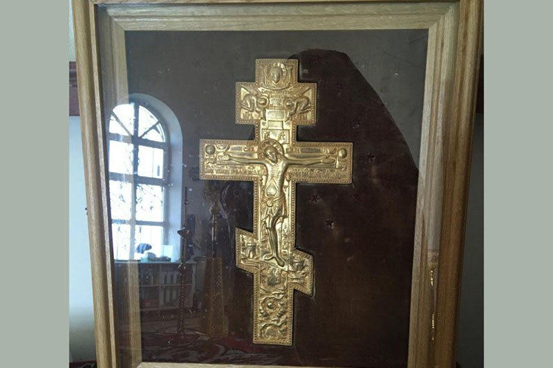 Старинный крест пожертвовал прихожанин, житель села Сабурова. Святыня долго хранилась у него дома. Но в канун Крестопоклонной недели благодетель решил передать святыню в храм.