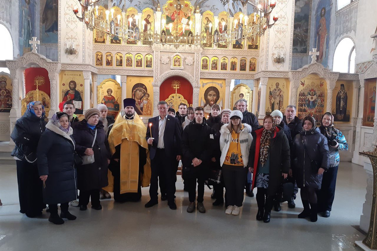 Перед началом молебна отец Максим обратился к собравшимся со словами важности выполнения воинского долга для защиты правды и справедливости во все времена. Затем священник привел примеры из истории России, в которых Святая Церковь благословляла народ на защиту Родины.