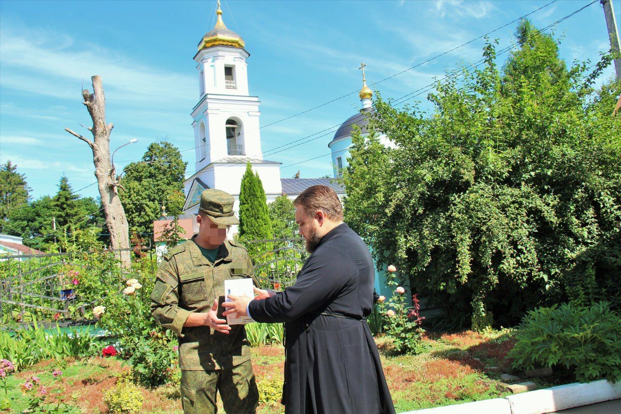 Отец Андрей благословил Ивана на служение Отечеству и выразил ему слова поддержки. Также батюшка вручил воину иконки священноисповедника Георгия Коссова, которые попросил передать и другим участникам СВО.