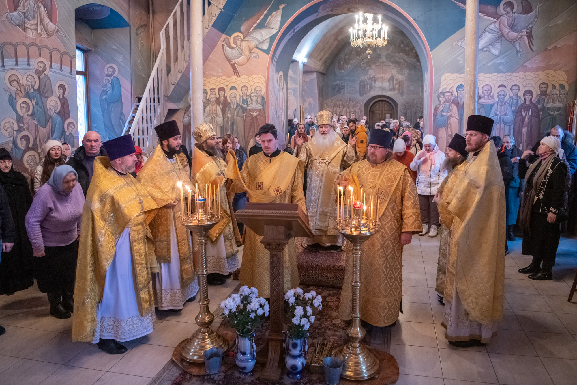 Архипастырю сослужили: благочинный Мценского округа протоиерей Владимир Герченов, руководитель информационно-аналитического отдела иерей Алексей Лаушкин и клирики храма.