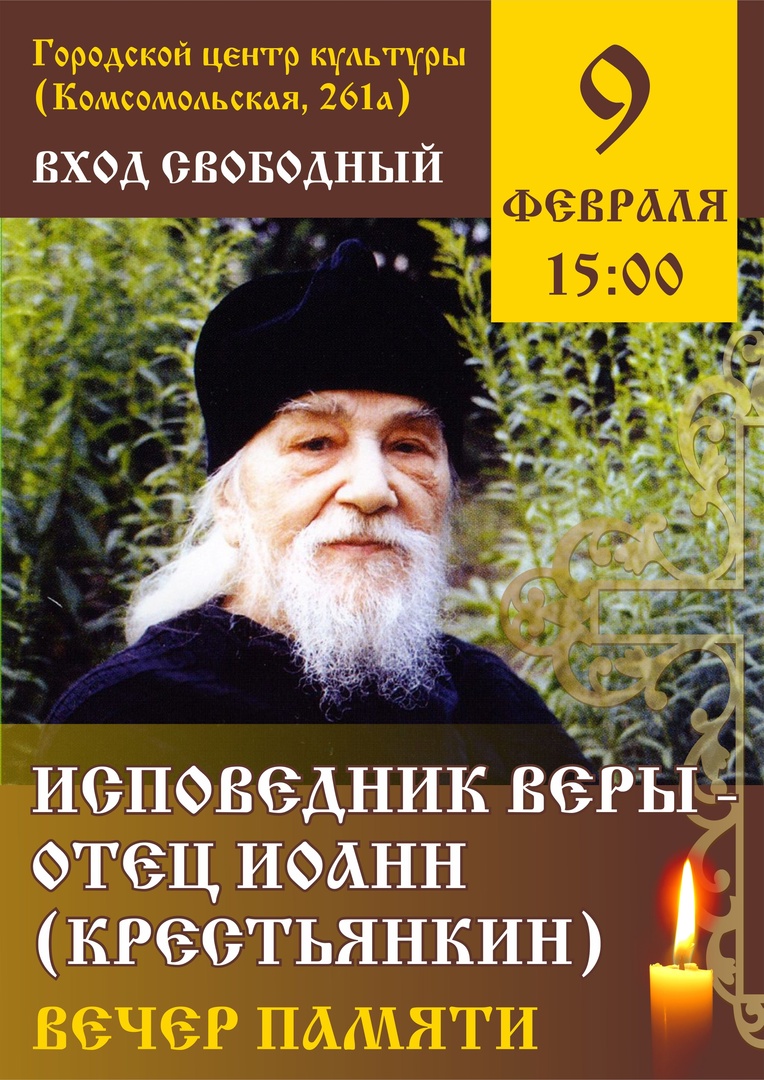 9 февраля в 15:00 в Орловском городском центре культуры состоится вечер памяти «Исповедник веры.