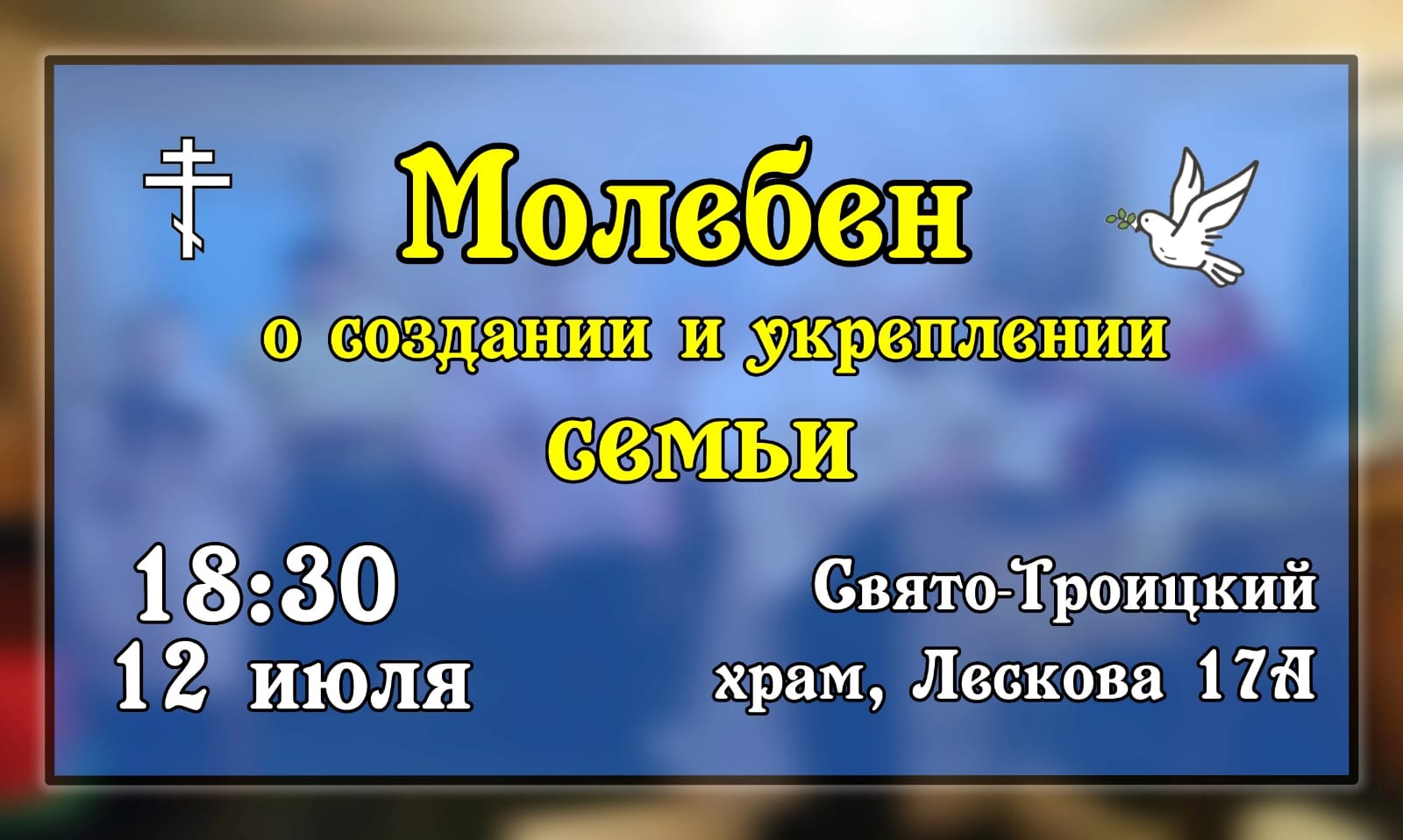 12 июля в 18:30 в Свято-Троицком храме города Орла будет совершен молебен о создании и укреплении семьи.