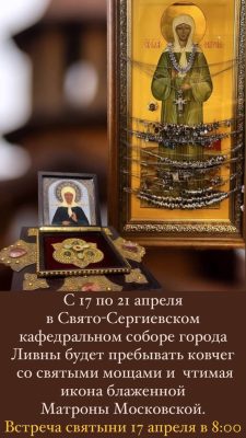 В Ливны прибудет ковчег с частицей мощей и икона блаженной Матроны Московской.