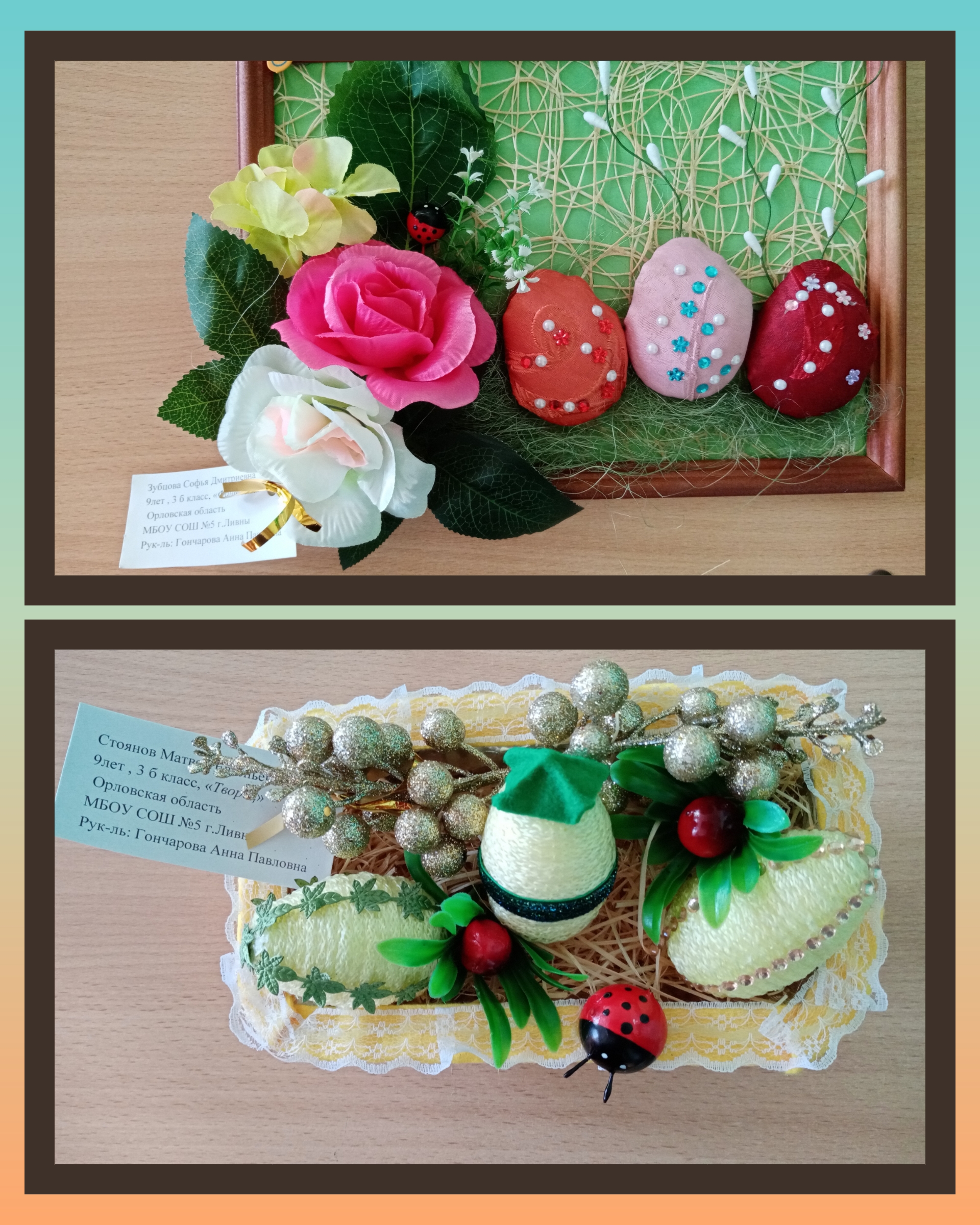 На муниципальный (епархиальный) этап Международного конкурса-фестиваля декоративно-прикладного творчества «Пасхальное яйцо - 2023» от МБОУ СОШ№5 г.Ливны от школы было представлено 23 яйца.