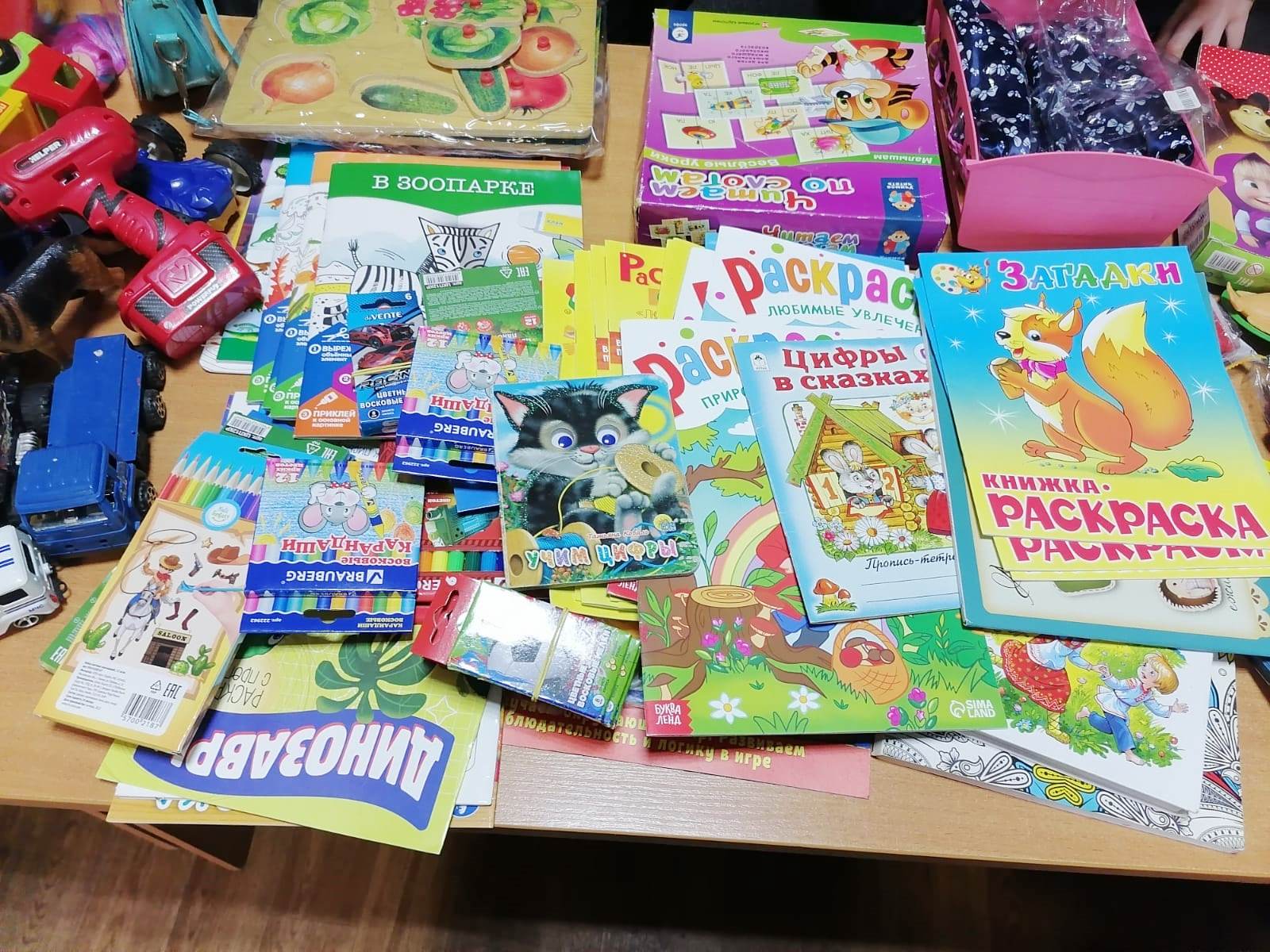 Учащиеся воскресной школы храма иконы Божией Матери «Знамение» Курская-Коренная города Орла решили поддержать воспитанников детских домов и интернатов, которые сейчас проходят курс лечения в НКМЦ имени З. И. Круглой. Юные прихожане вместе с родителями собрали для маленьких пациентов инфекционного отделения игрушки, раскраски и цветные карандаши. Не забыли и о новорожденных — для них купили погремушки и развивающие игрушки.