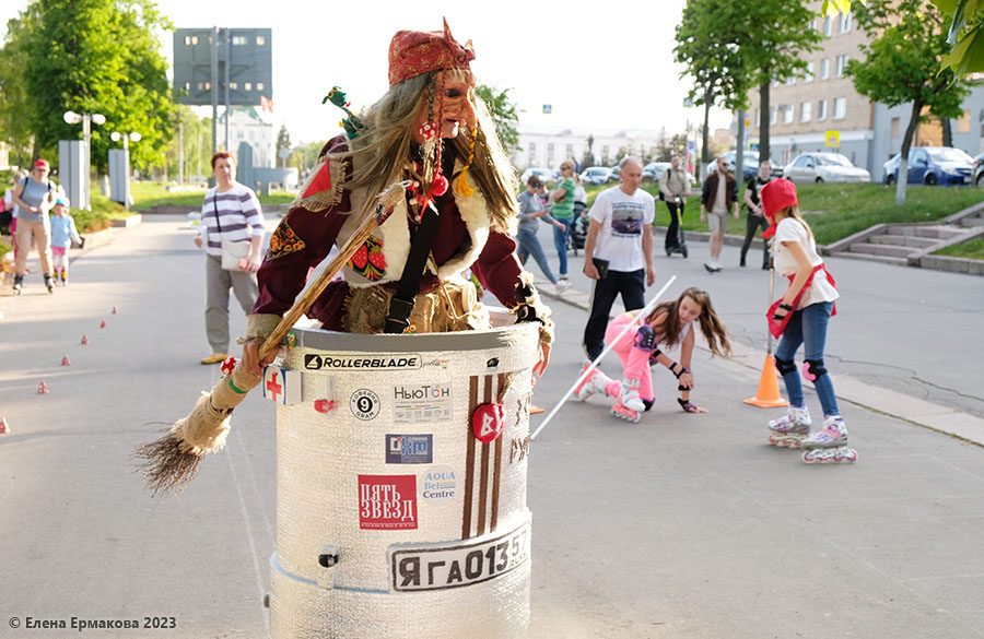 В роли Бабы-Яги выступил тренер орловской роллер-школы Андрей Бутырин: