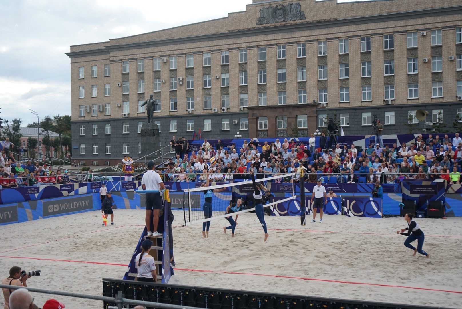 Накануне, 12 августа, на площади Ленина прошли финальные игры 13-го этапа чемпионата России по пляжному волейболу, который стартовал 9 августа.