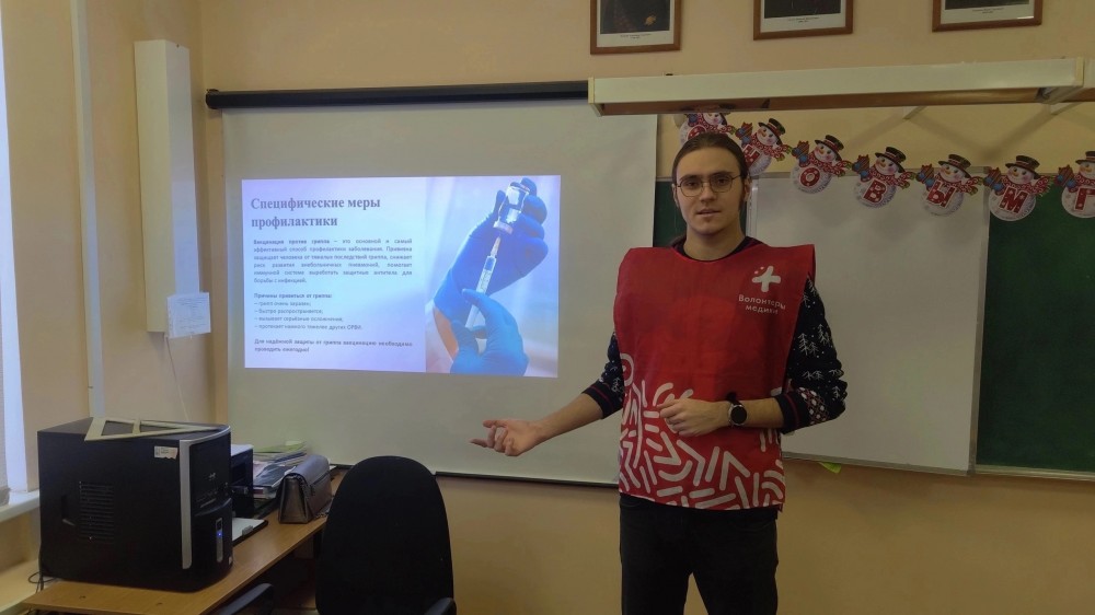 3 февраля в лицее № 22 им. А. Иванова волонтёры-медики провели лекцию-беседу «СанПросвет: профилактика ОРВИ».