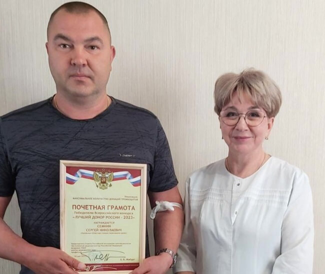 Семкин первый приз в номинации «Максимальное количество донаций тромбоцитов». Известно, что орловец является донором с 2007 года. Мужчина сдавал кровь и её компоненты 212 раз, из них 68 раз – именно тромбоциты.