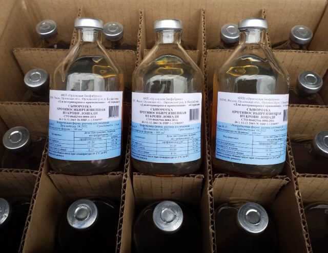 Как сообщает региональное Управление Россельхознадзора, препарат произведён Орловской биофабрикой. Сывороткка получена из лошадиной крови.