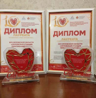 Орловская станция переливания крови получила премии сразу в двух номинациях: