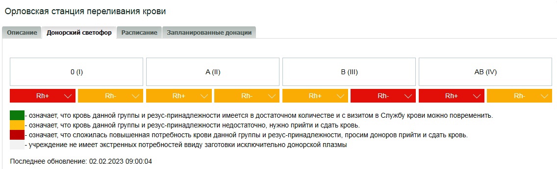 Орловская станция переливания крови в социальных сетях регулярно публикует «Донорский светофор».