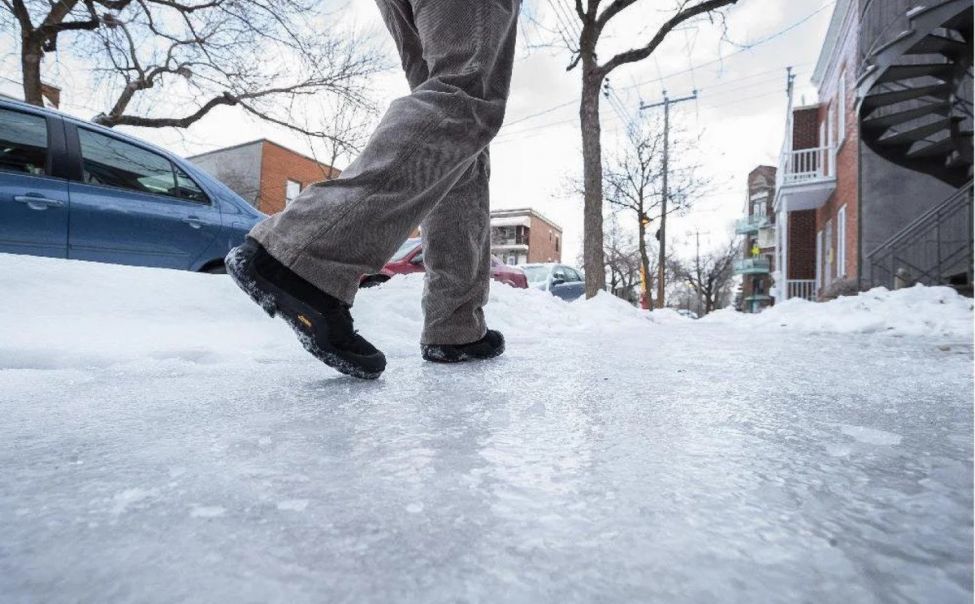 По улицам, покрытым слоем льда, необходимо передвигаться медленно, и ходить по песку, который рассыпают коммунальные службы.