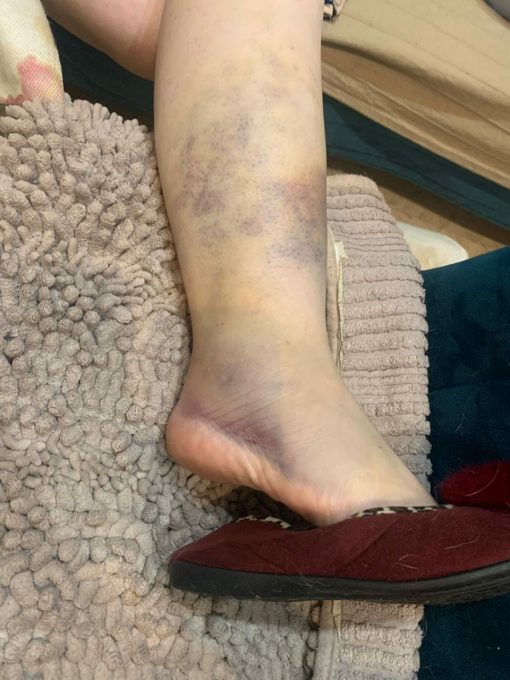 По словам фельдшера, от удара у неё образовалась гематома (на фото). Она написала заявление в полицию, ей выдали направление для прохождения судебно-медицинской экспертизы.