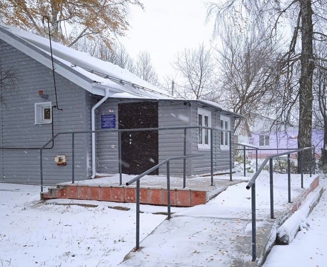 Также на здании заменили кровлю – с шиферной на металлическую. Фасад утеплили, затем обшили металлическим сайдингом. Для маломобильных групп населения обустроили пандус с поручнями.