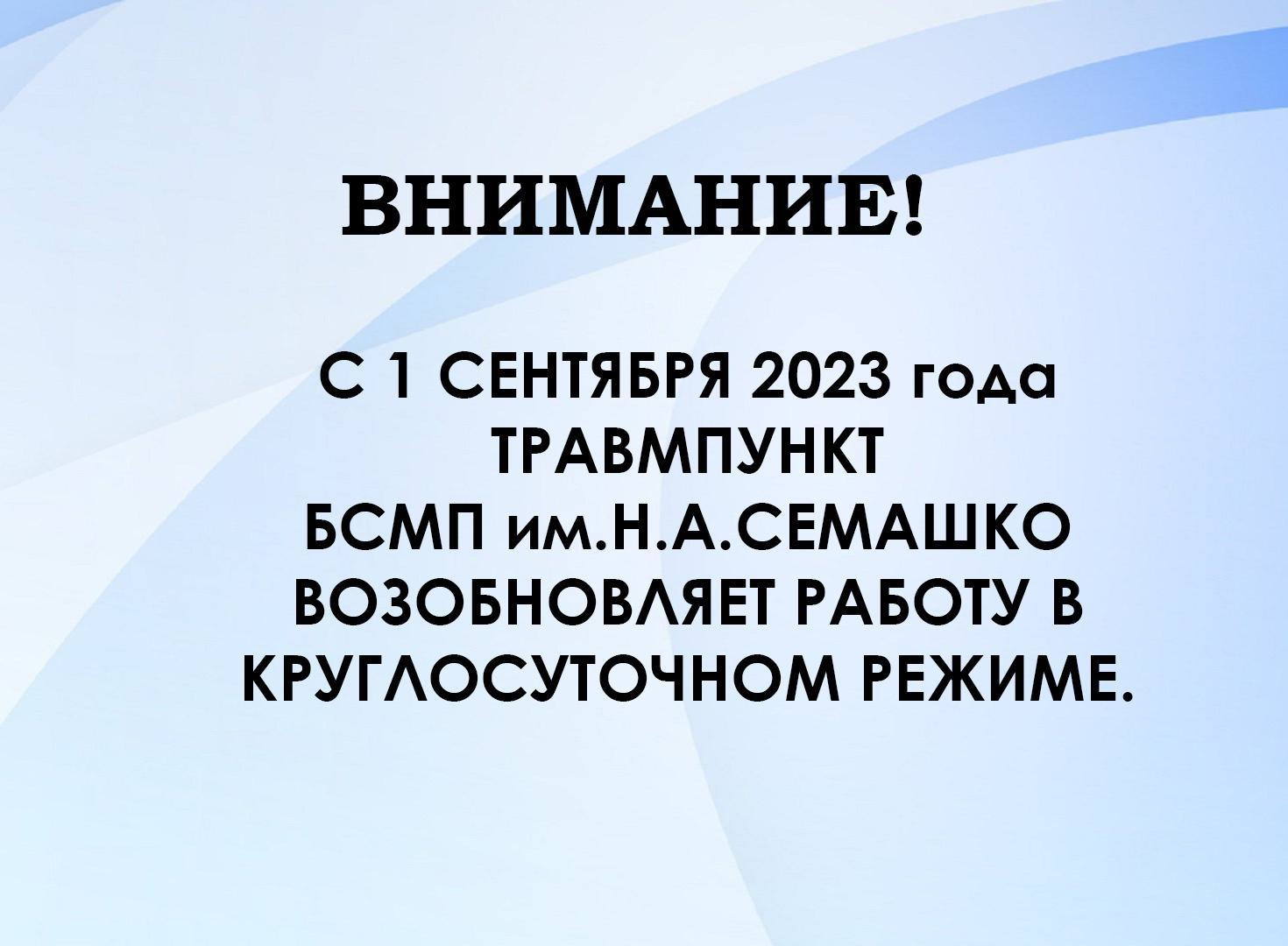 «С 1 сентября 2023 г. травмпункт БСМП им.Н.А.