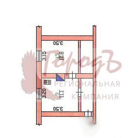 Общая плoщадь 30 кв. м., жилaя – 10,8 кв.м., куxня - 11 кв.м