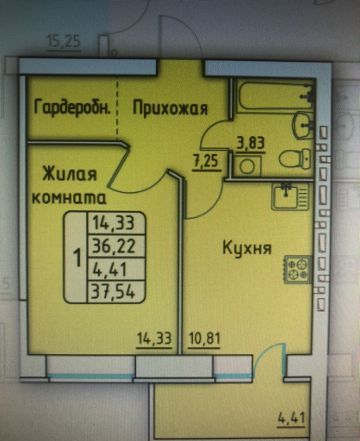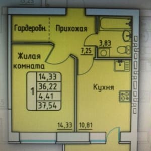 - Общая площадь: 37.5 м²