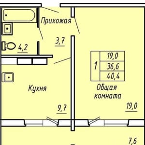 - Жилая площадь: 19 м²