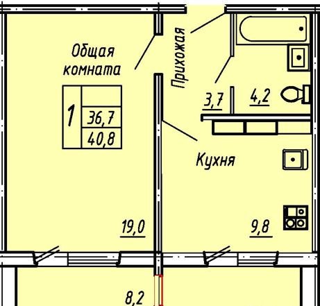 - Жилая площадь: 19 м²