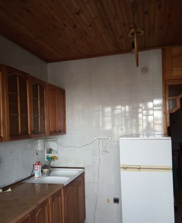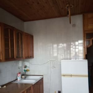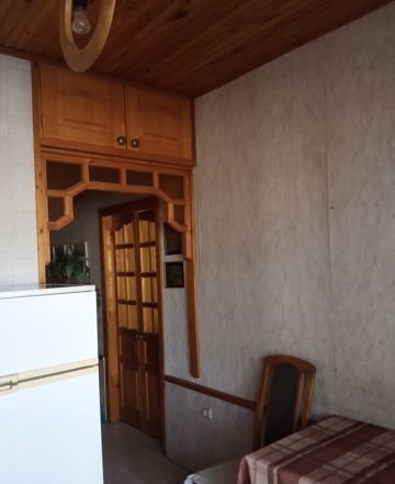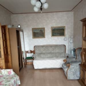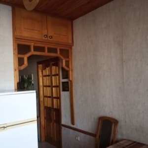 В комнате ламинат, в остальной части квартиры везде единая плитка.Потолок на кухне и в коридоре отделаны лиственницей.Двери,окна,плинтуса из натурального дерева.По желанию остается вся мебель из дуба производства Беларусь,прихожая,холодильник и стиральная машина.