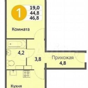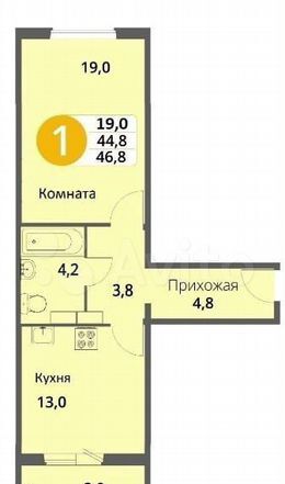 - Жилая площадь: 19 м²