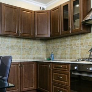 встроенная кухня с полным набором посуды для приготовления и принятия пищи