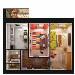- Комнат в квартире: 2