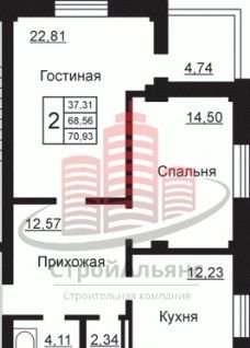 - Общая площадь: 70.9 м²